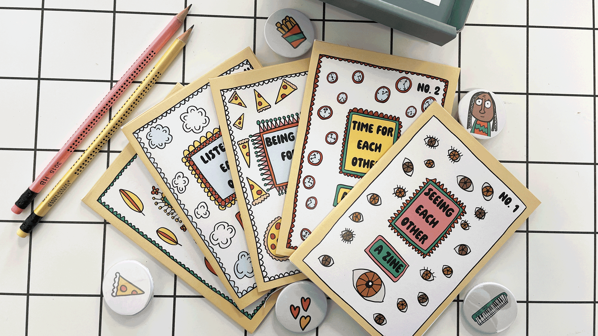 We have created this box of zines for Aspire Youth Connect. The project is about supporting migrant families to talk and connect with each other.